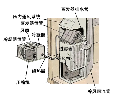 電冰箱主要由外殼(金屬鐵或塑料)、保溫層泡棉、壓縮機、銅管、電容器、燈管、儲物籃等零部件組成,材質構成有玻璃、塑料、銅、鐵、鋁等再生資源。